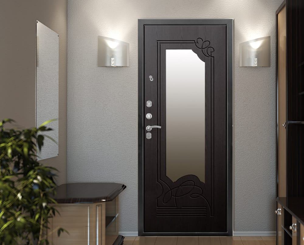 Зеркальные входные двери в интерьере с каждым годом становятся все популярнее. При установке такой конструкции можно значительно преобразить помещение. Конструкция выделяется рядом плюсов и минусов, которые важно учитывать перед заказом. Ниже мы расскажем об основных особенностях железных дверей с декоративными зеркальными элементами.
