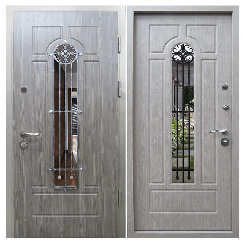 Железные двери МДФ с ковкой/стеклом по внешней отделке